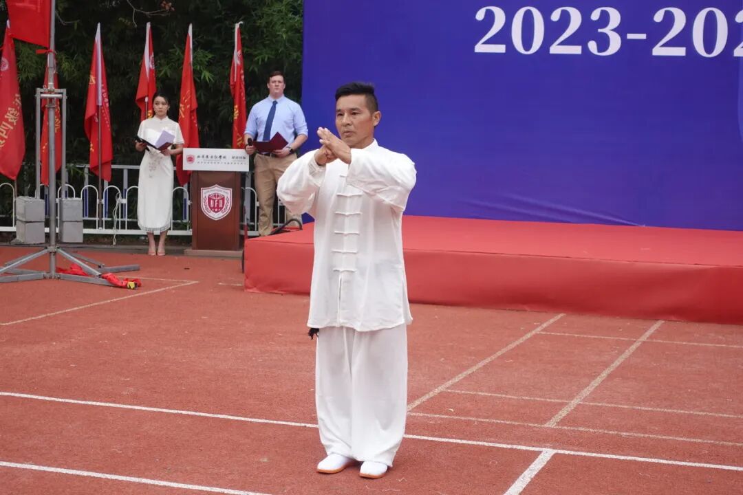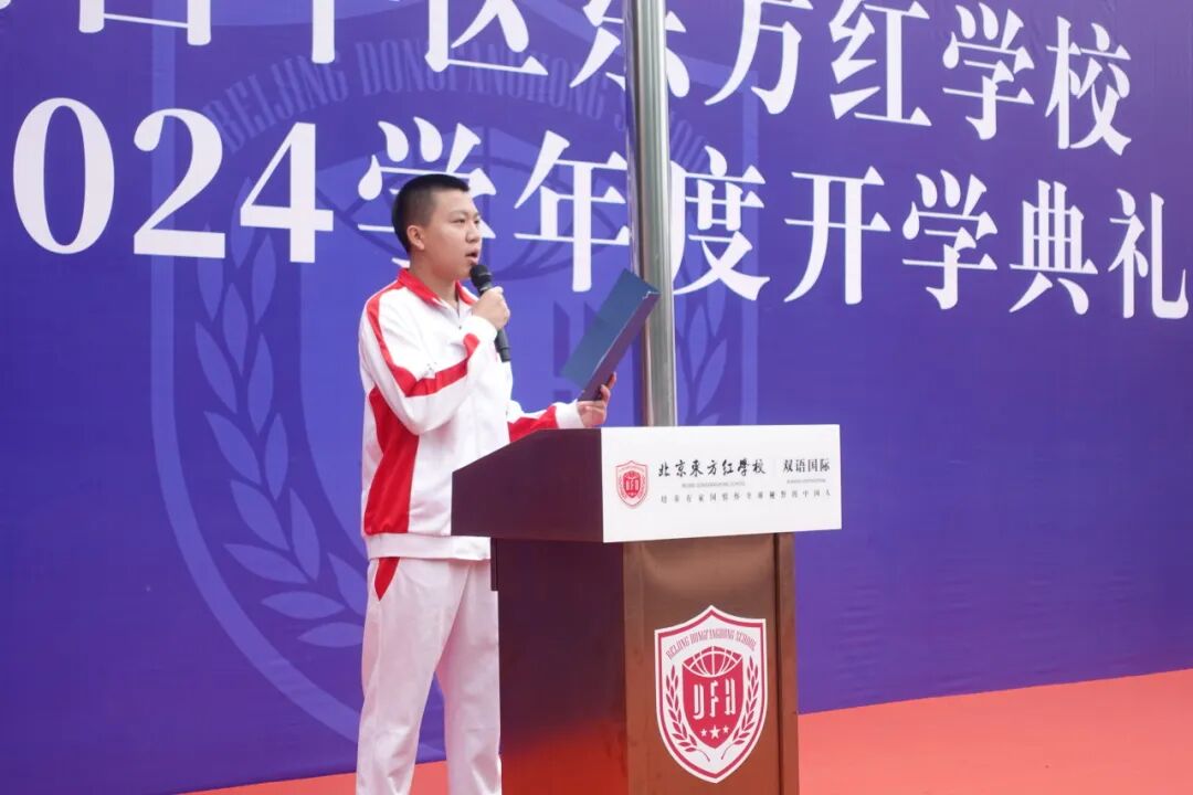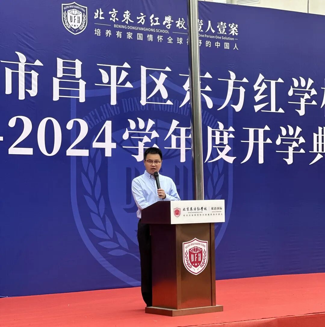 付校长首先代表东方红学校向全体2023级新同学们表示热烈欢迎,他深情寄语全体新生:要做有家国情怀,国际化视野的新时代东方红学子。