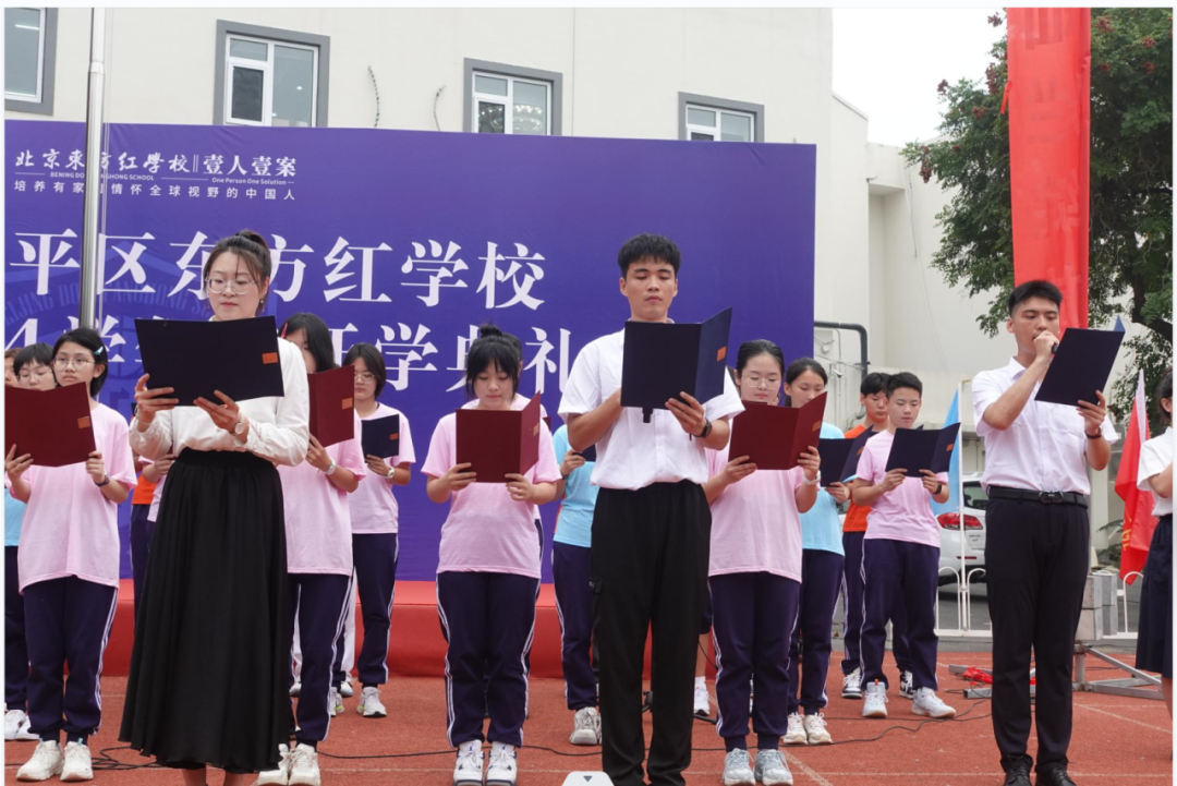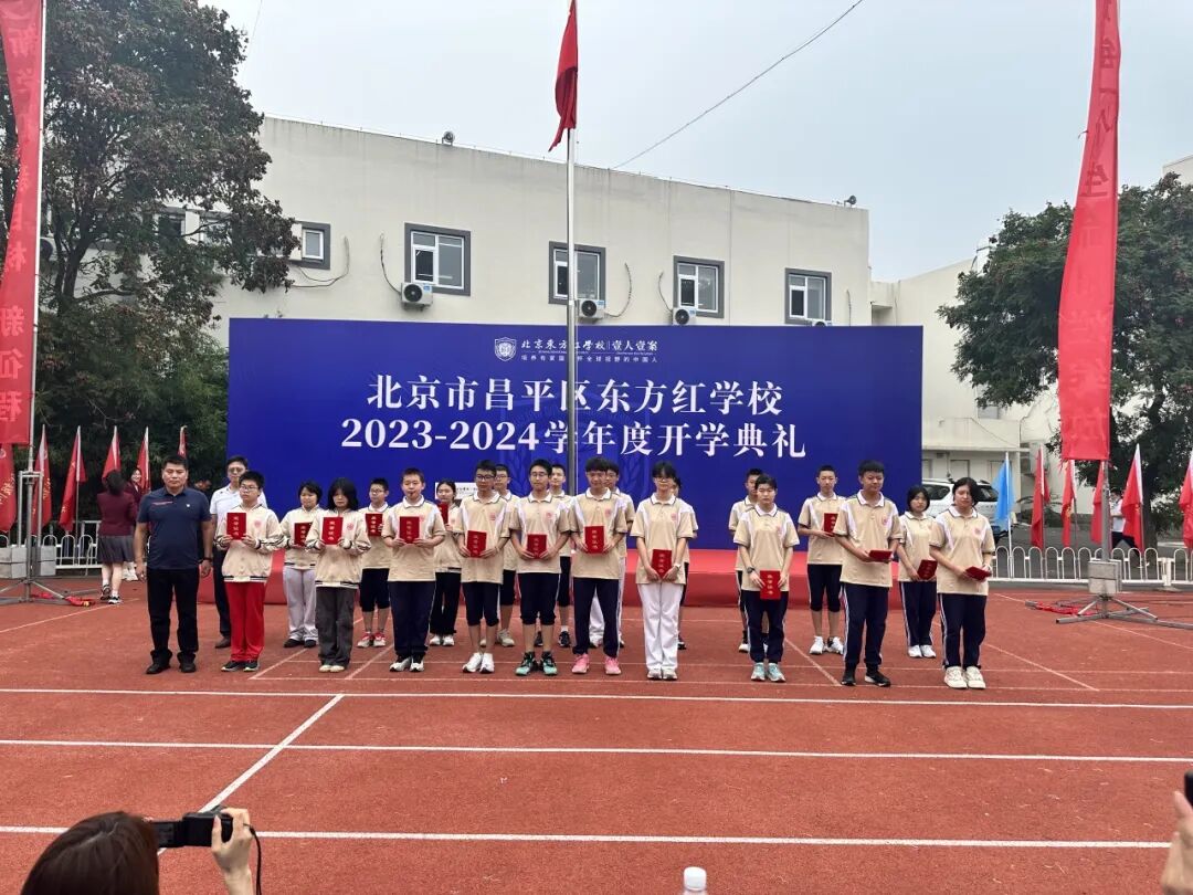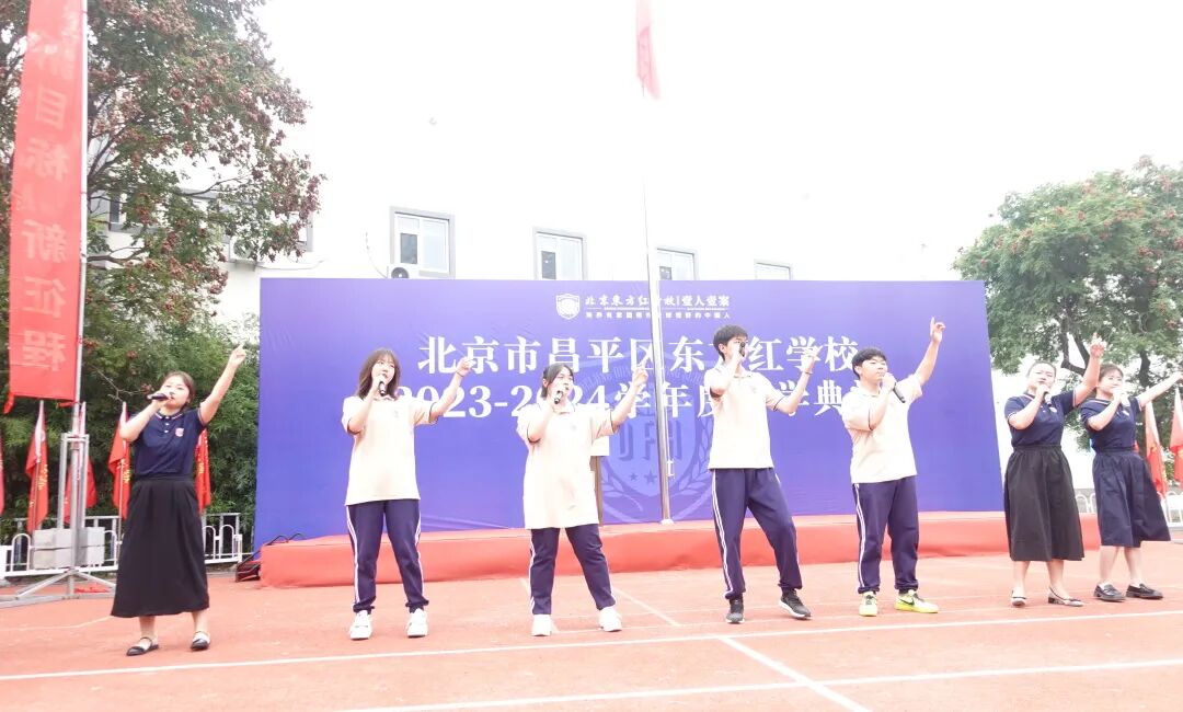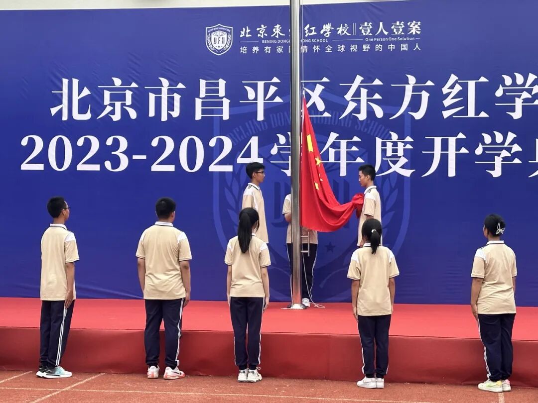 2023年9月5日北京东方红学校2023-2024学年开学典礼如期举行。全校师生汇聚在风华运动场,一张张青春的笑颜明媚了校园的秋日。