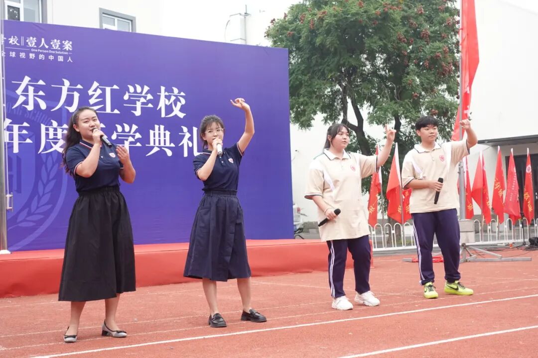 在东方红师生共唱《青春东方红》的歌声里,开学典礼临近了尾声。